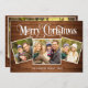4 PHOTO Christmas Rustic Brown Wood Greeting Holiday Card