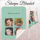 4 photo collage add text green sherpa blanket