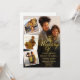 Personalise this stylish wedding invitation with your four favourite photos, wedding details in chic gold typography. Designed by Thisisnotme©