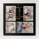 Elegant 4 Photo Collage Family Gold Black Square. Easily replace the sample photos with your own. A stylish set script for Family is in gold to the left. The black background colour can be changed to a different colour if you so wish via the Click to Customise Further option, as can the white borders around the photos and text.