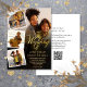 4 Photo Collage Gold Script QR Code Wedding Invitation