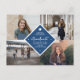 Chic classic blue and white typography script making a stylish elegant personalised graduation 4 photo grid announcement postcard. ++++++++++ Easy to customise with your details, text and four custom images on both sides! +++++++++++ If you need a specific colour or combination, please message the designer through the button below!