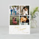 4 photo collage Merry Christmas elegant script Foil Holiday Card