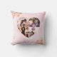 4 Photo Collage Pink Floral Puzzle Heart Custom Cushion