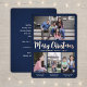 Send stylish joyful greetings and share your favourite pictures with a custom four photo collage navy blue and rose gold foil holiday card. All text on this template is simple to customise to include any wording, such as Merry Christmas, Happy Holidays, Seasons Greetings, New Year Cheers etc. (IMAGE PLACEMENT TIP: An easy way to centre a photo exactly how you want is to crop it before uploading to the Zazzle website.) Front side of card is printed with real metallic rose gold foil lettering on a navy blue ombre background. The modern minimalist design also features trendy handwritten style script calligraphy, simple typography message on back, and a unique photo grid of 4 images with captions. Family and friends will love displaying this elegant customised card.