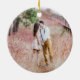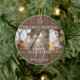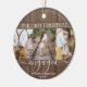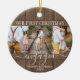 4 Photo First Xmas Engaged Rustic Faux Wood Round Ceramic Ornament