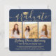 4 Photo Graduation Collage Modern Navy Blue & Gold Announcement