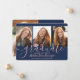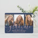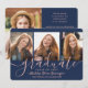 4 Photo Graduation Collage Navy Blue & Pink Script Announcement