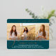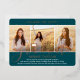 Invite family and friends to celebrate a high school or college graduation with stylish custom 4 photo collage teal, white and rose gold foil invitations. All pictures and wording are simple to personalise. (IMAGE PLACEMENT TIP: An easy way to centre a photo exactly how you want is to crop it before uploading to the Zazzle website.) Front of design is printed with real metallic foil on a blue-green background. It features a mortar board cap, handwritten style script calligraphy, elegant modern typography, and four photos of your choice, such as senior pictures or images from the commencement ceremony. This elegant graduation invitation card is a trendy and chic way to begin your special day celebration. Congratulations to the graduate!