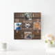 4 Photo Rustic Brown Wood Love You Nana Grandkids Square Wall Clock