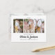 If unexpected circumstances have caused a postponement or cancellation of your special day, inform family and friends of the change in plans with these elegant wedding save the new date postcard invitations. All photos and text are simple to customise. (IMAGE PLACEMENT TIP: An easy way to centre a photo exactly how you want is to crop it before uploading to the Zazzle website.) Design features modern minimalist typography, stylish handwritten style script calligraphy, and 4 of your custom pictures (3 on front and 1 on back). This unique engagement announcement note card is a chic way to inform wedding guests of your upcoming special day celebration and invite them to resave your new rescheduled date.