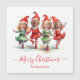Cute dancing Christmas elves holiday card with 4 photos. Personalise with photos and family name.