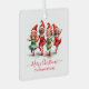 Cute dancing Christmas elves metal ornament with 4 photos. Personalise with photos and family name.
