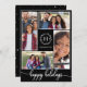 4 Photos Collage Monogram Happy Holidays Black Invitation