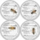 Four 2.75" circles on a 6" template. Honey Nutrition Facts with four realistic bees - choose transparent (clear background) or matte white background.