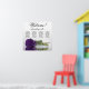 This stunning wedding seating chart has four tables with 10 seats per table, accommodating a total of 40 guests. The chart is adorned with a sophisticated and romantic design, featuring a single long-stemmed rose in a rich deep royal purple shade, delicately resting on its side and casting a reflection in a serene pool of water. The chart's title, written in graceful script calligraphy, warmly welcomes guests with "Welcome! Please find your table" while leaving ample space below for the names of the couple and wedding date. This elegant seating chart serves as a charming and practical way to greet and assist your guests in finding their designated seats at your wedding reception.