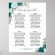 Introducing our exquisite wedding seating chart with a captivating rustic boho chic aesthetic. Delicately adorned with hand-painted watercolor roses in stunning shades of teal, turquoise, aqua, and cyan, this piece also showcases enchanting garden greenery and elegant eucalyptus leaves. Accommodating 40 guests, with 10 seats per table, it ensures a smooth and organised seating arrangement. The graceful script calligraphy title reads "please find your table" while the bottom section offers ample space to personalise it with the couple's names and wedding date. This remarkable creation not only enhances the allure of your wedding reception but also provides a hassle-free experience for your cherished guests to effortlessly locate their seats.