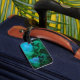 I was happy with the acrylic tag but it came with a thin leather strap to attach the tag to luggage (like a cat collar). I replaced the strap with a metal ring off of a key ring as the leather strap would come undone or break easily as luggage is sometimes handled without much care by airlines. Printing is great. Colours and positioning of the design I put on the tag were perfect. Very pleased.