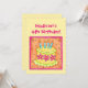 Celebrate a girl's fourth 4th birthday with a party with this custom invitation personalised with her name and "4th birthday" on the front and all the party information on the back side of the invitation. This invitation will create a happy birthday with cute and whimsy art of a yellow, hot pink and lime green birthday cake with four turquoise candles. A whimsy hot pink fuchsia border surrounds the cake and the orange background is filled with whimsy circles. The invitation has a yellow background on the front and back and makes a colourful birthday. The birthday cake is also on the back side with the party information. This original art is by Phyllis Dobbs. Fully customisable and can be customised for another age for a fun party. Coordinate with stamps and other products that match.