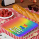 This vibrant and joyful birthday-themed paper plate design features a large number “4” having a colourful rainbow spectrum inspired gradient pattern. It also features the message “HAPPY 4th BIRTHDAY,”, and a customisable recipient name. The background also features a fun multicolored rainbow spectrum inspired gradient pattern. Exciting birthday themed paper plates like this might be used at a party celebrating somebody’s fourth birthday. [~Z0000583]
