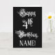 The front of this ornate and opulent birthday greeting card design features the message “Happy 4th Birthday,” in formal script style text, on a black coloured background. The inside has a personalised birthday greeting message, or could perhaps be cleared and left blank if a message is to be written by hand instead. A fancy, customised birthday greeting card like this might be a respectable way to deliver birthday greetings to somebody who is celebrating their fourth birthday. [~Z0000554]