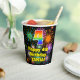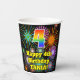This fun and exciting birthday paper cup design features a large number “4” with a rainbow spectrum gradient inspired pattern, along with the message “Happy 4th Birthday,”, and a personalised name. The background features a multicolored pattern inspired by the appearance of bursting celebratory fireworks. Colourful, vibrant paper cups like this might be fun to have at a birthday party/celebration being held to honour somebody’s 4th birthday. [~Z0000539]