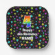 4th Birthday: Fun Stars Pattern and Rainbow “4” Paper Plate