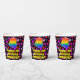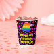 This colourful and happy birthday paper cup design features a large number “4” having a rainbow spectrum gradient inspired pattern. It also features the message “Happy 4th Birthday,”, and an editable name. The background features a pattern of heart shapes with colours like purple, pink, and red. Upbeat, fun paper cups like this might be fun to have at a birthday party being held to celebrate somebody’s fourth birthday. [~Z0000548]