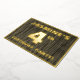 The front of this bold fourth birthday party foil invitation card features a custom name, a large number “4th”, the message “BIRTHDAY PARTY!”, and a border, all in foil. There is a rustic, yet sophisticated, faux wood grain look inspired pattern for the background of the front. The back features personalised details about the event, such as the date, time, location, and any other information that may be relevant. Customised invitations like these might be used to invite guests/attendees to a birthday gathering being held in celebration of somebody’s 4th birthday. [~Z0000598]