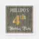 This elegant and opulent birthday-themed paper napkin design features a personalised name and the message “4th Birthday Party”. The large number “4th” has a faux/imitation gold-inspired colouring pattern, the words “Birthday Party” are in fancy script-style text, and the background features a faux/imitation woodgrain-inspired pattern. Luxurious, fancy paper napkins like this might be useful at a birthday party/celebration being held to celebrate somebody’s fourth birthday. [~Z0000566]