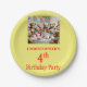 Celebrate with a party when your child turns 4. A 4th birthday party paper plate with a lot of teddy bears having a party. All kids and teddy bears welcome! Personalise with your child's name and your party information using the templates provided. Contains generative content.