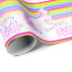 Unicorn watercolor rainbow stripe patterned four birthday wrapping paper. Personalise with your own name, currently reads Happy Birthday Taylor four. Cute whimsical chantering unicorn painting and design by Sarah Trett www.sarahtrett.com for www.mylittleeden.com on zazzle.