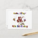 Cute whimsical Gone Buggy 4th Birthday design featuring a big polka dot mushroom, ladybugs, butterflies, and snails!