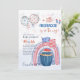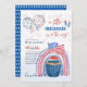 This pretty watercolor 4th July (little firecracker cupcake USA flag rainbow all in red white and blue against a blue background) themed Baby Boy or Girl Shower invitation has text template fields both sides so you can add all your event details. This invitation can also be used as a gender reveal party invitation or announcement.