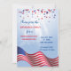 This simple, patriotic 4th of July Independence Day Party features a stars and cohetes. The text is personalised in white typography. All image rights reserved.