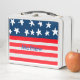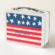 This is a standard metal lunchbox that appears to work just fine. We designed this box ourselves with an uploaded photo and custom text on the front and back. It looks absolutely beautiful except the front of the lunchbox is not centered like it shows in the photo. The print borders don't align with the inset flat part of the box where the preview photo online showed it perfectly centered in there. The back looks nice and centered though.