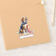 This adorable holiday vinyl sticker features a sitting coonhound with a red, white and blue American flag. Personalise with your choice of name or special text in matching red. Great for holiday gift bags.