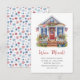 Introducing a delightful moving home announcement card, beautifully adorned with a charming watercolor illustration of a cosy house, festively decorated for the Fourth of July. The scene is set against a crisp white background, allowing the vibrant colours of red, white, and blue to shine through. Personalise this enchanting card with your new home details to share your exciting news in a heartfelt and whimsical way!