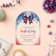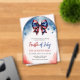 This design features 4th of July celebration party with USA flag inspired bow ribbon, red white and blue watercolor background. Perfect for patriotic BBQ parties. Personalise it with your event details to make it completely yours!
