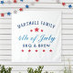 Stylish 4th of July party photo backdrop tapestry sign can be fully-personalised for your special event. Design features classic navy, red, white, and blue colours with star accents.