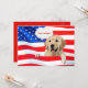 Golden retriever on American flag background for 4th of July Party invite