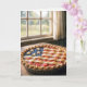 A homemade strawberry pie with an American-style crust, perfectly placed on a rustic wooden table by the farmhouse window, pays tribute to the spirit of patriotism.