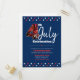 Get ready to celebrate our country in style when you send out these striking, graphic, patriotic, personalised, Fourth of July Independence Day party postcard invitations. Bold fireworks “4”, white and red typography and tiny stars overlay a navy blue background. Customise with all your party information. Sure to generate excitement for your big summer event!