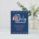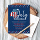 Get ready to celebrate our country in style when you send out these striking, graphic, patriotic, personalised, Fourth of July Independence Day party postcard invitations. Bold country, rustic “4” American flag, white and red typography and tiny stars overlay a navy blue background. Customise with all your party information. Sure to generate excitement for your big summer event!