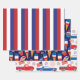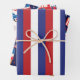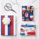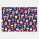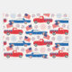 A Red White And Blue Patrotic Wrapping Paper Sheet Set For The 4th Of July Celebration Designed With American Flags, Sweets And Cars
