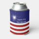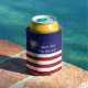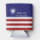 This fun can cooler is decorated with a sparkler and red and white stripes on a patriotic blue background. It is further enhanced with the saying Happy 4th and the family name, which is easy to customise or delete if preferred.