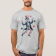 Bring some patriotic groove to your wardrobe with this fun dancing skeleton t-shirt. Featuring a lively skeleton dressed in red, white, and blue American attire, this design captures a festive spirit as it twirls and strikes a pose with a cane held high. Perfect for Independence Day celebrations, concerts, parties, or anyone who loves a touch of quirky charm with their patriotism.
