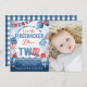 This 4th of July 2nd Birthday party invitation is designed to match our 4th of July collection! This theme is perfect for any patriotic, red, white, and blue themed birthday party. This design features watercolor fireworks, ice cream, balloons, sunglasses, beach waves and a blue watercolor background. The backside features a picnic buffalo plaid pattern that perfectly compliment the frontside.