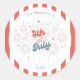 4th of July fireworks sticker. Unique red white and blue customisable patriotic favour stickers to add to party favours or envelops to elevate your curated patriotic party celebration bbq this 4th of July. Modern graphic with a slightly retro font on a background of red and white stripes. Find more cute 4th of July party supplies with this theme in the 4th of July Party Fireworks collection.