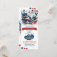 Elegant, unique fun, food and fireworks '4th July COOKOUT PARTY' invitation for near and dear ones. The design features red, white and blue colours and the elements of American Independence Day. The illustration has flying eagle, American flag, Statue of Liberty, stars and stripes in red, white and blue. Reverse side has a matching illustration. The text can be easily customised with your own words.